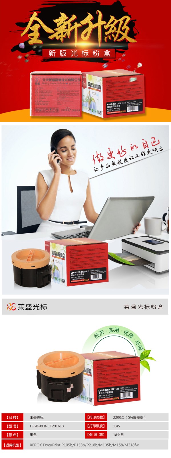 萊盛光標 LSGB-XER-CT201613 粉盒(適用于XEROX DocuPrint P105b/P158b/P218b/M105b/M158/M218fw)